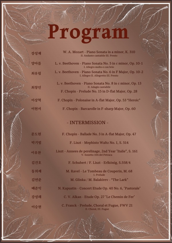 최유림(교육학과 석사과정): L. v. Beethoven - Piano Sonata No. 6 in F Major, Op. 10-2, I. Allegro, II. Allegretto, III. Presto